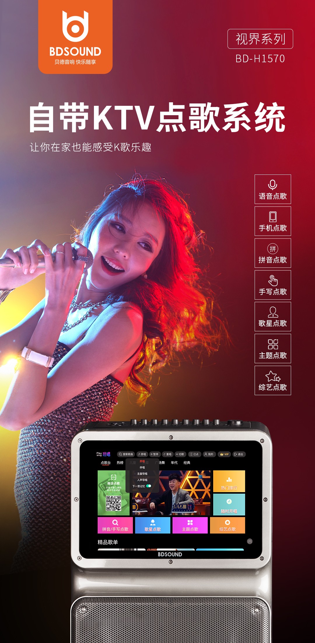 采用15.6吋触控屏+高清IPS显示屏采用A40新版(2+256G阳光歌库)支持微信点歌,
