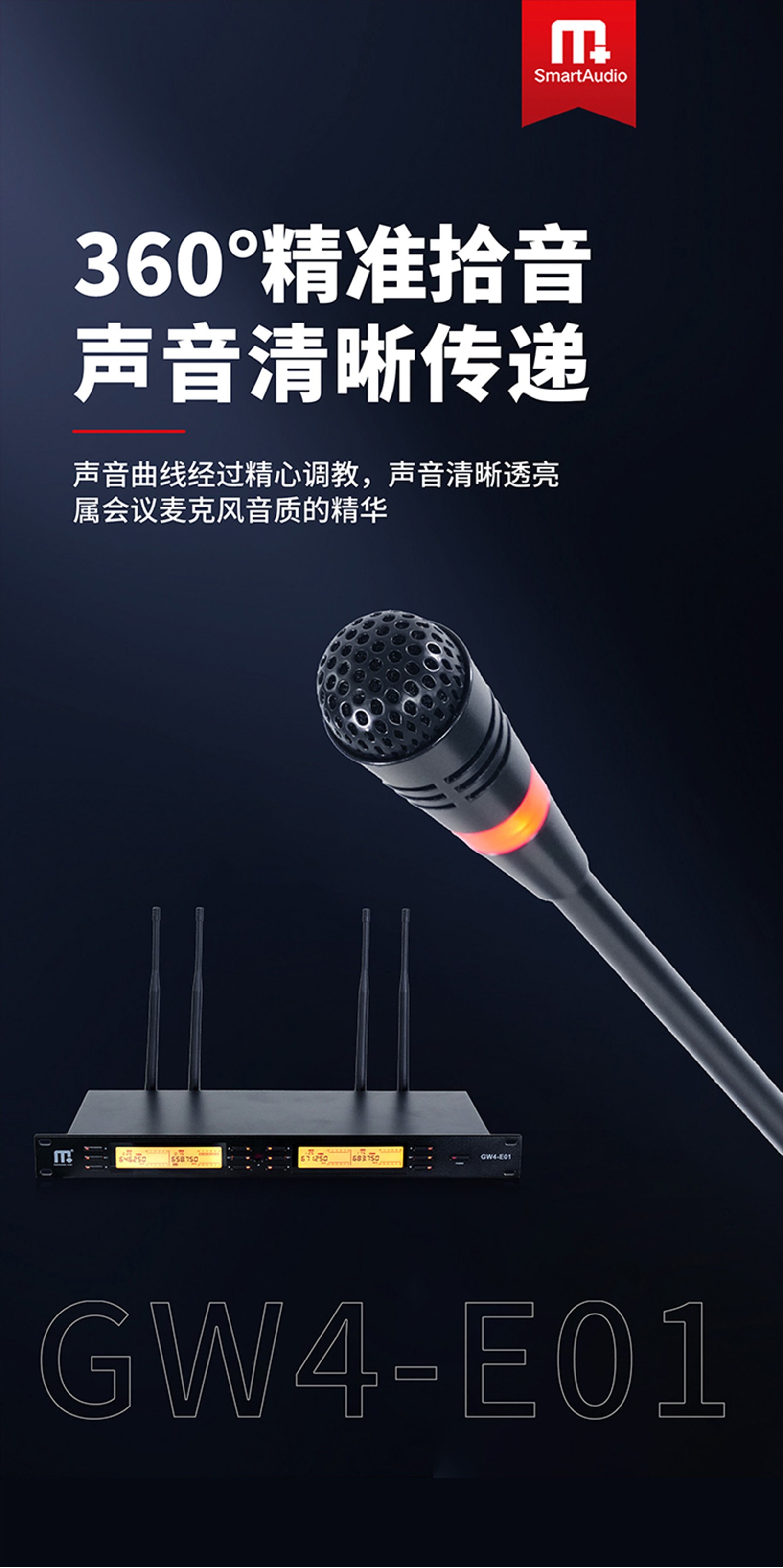 多种调节功能,拾音距离远、高效防啸叫抗干扰、多通道互通互用