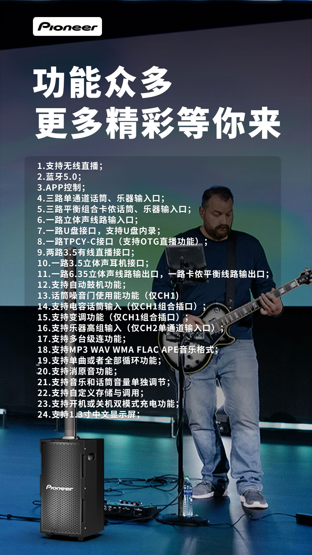 14.支持电容话筒输入(仅CH1组合插口)