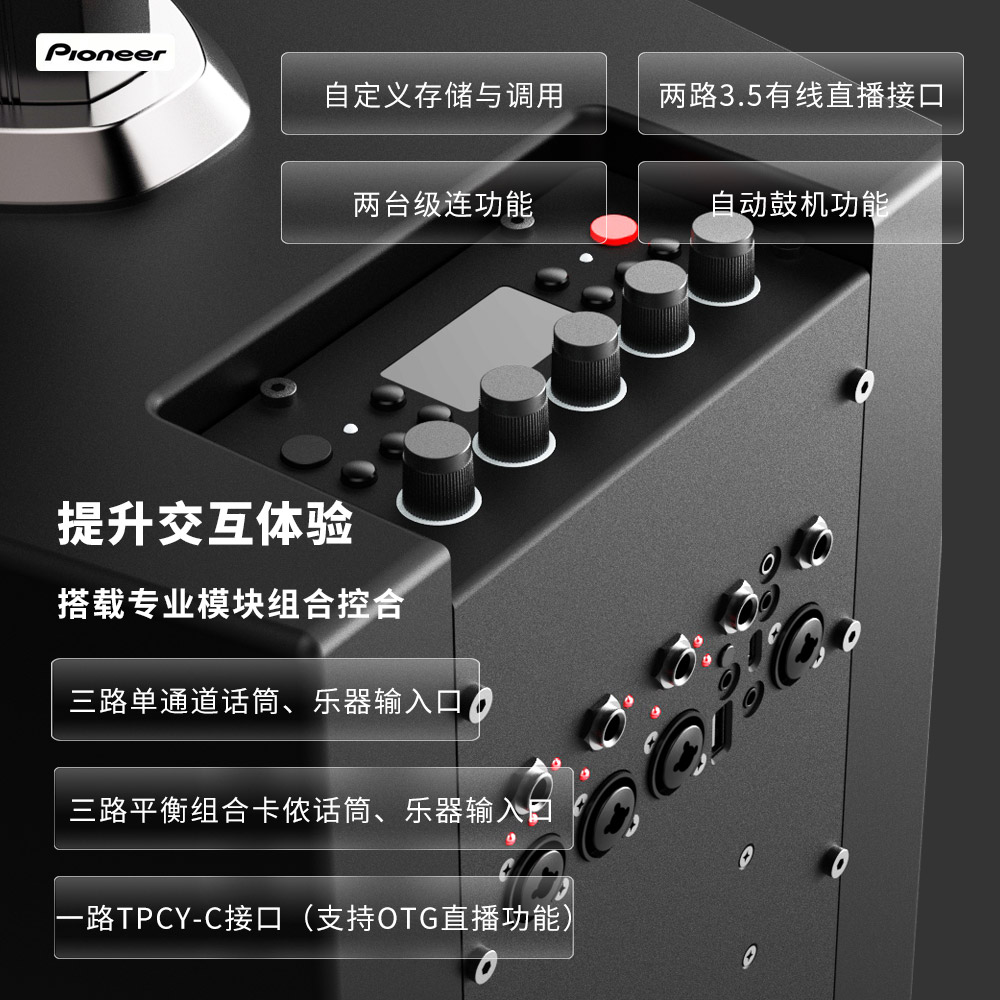 4.三路单通道话筒、乐器输入口;