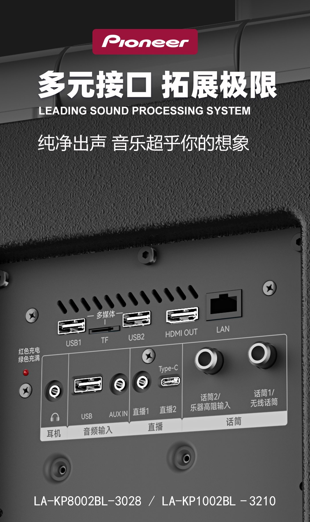 (15)支持一路6.35mm吉他或有线话筒输入接口,吉他独立效果调节;