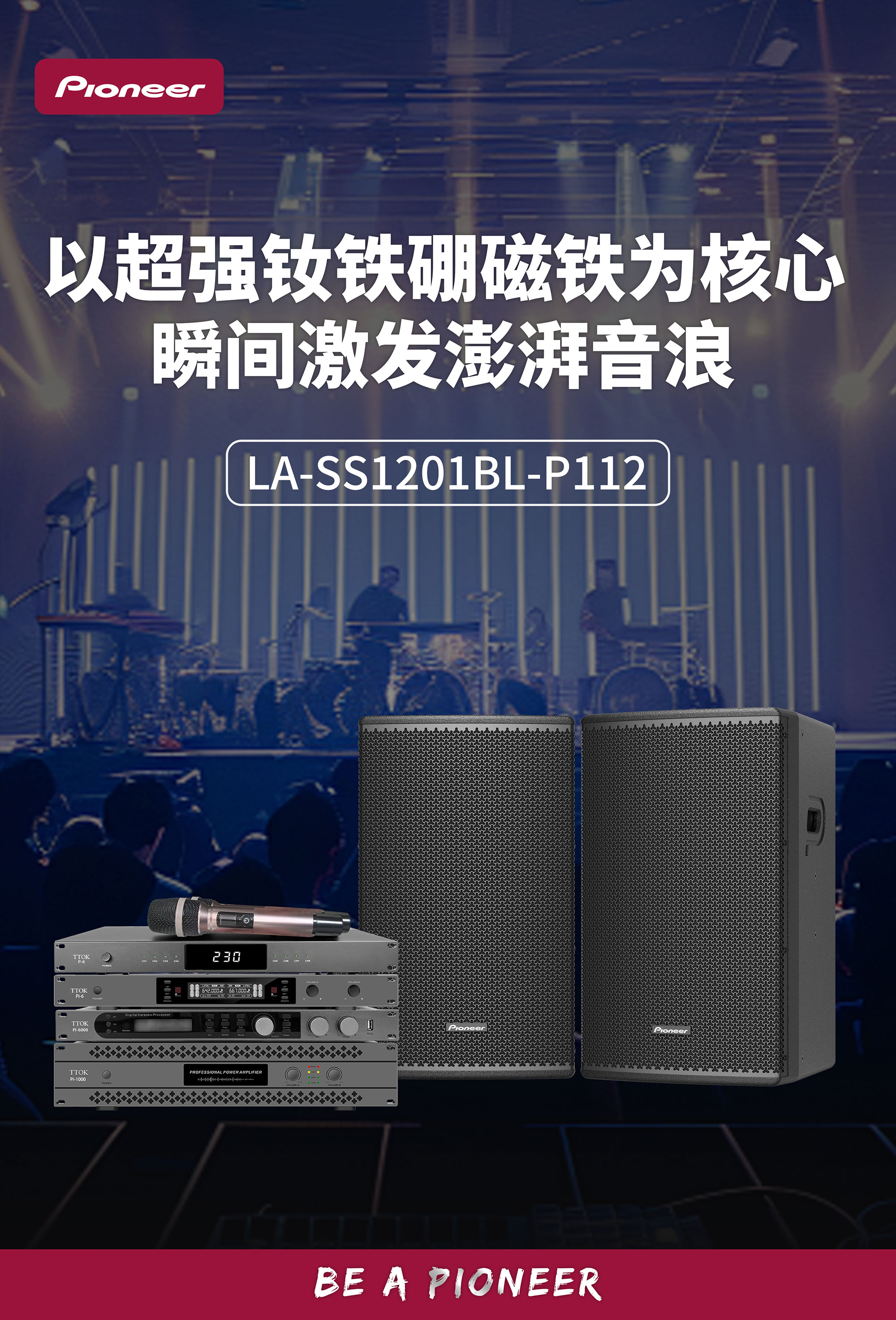 换能器配置:钕磁高频驱动器1.7″(44mm音圈70磁)×1