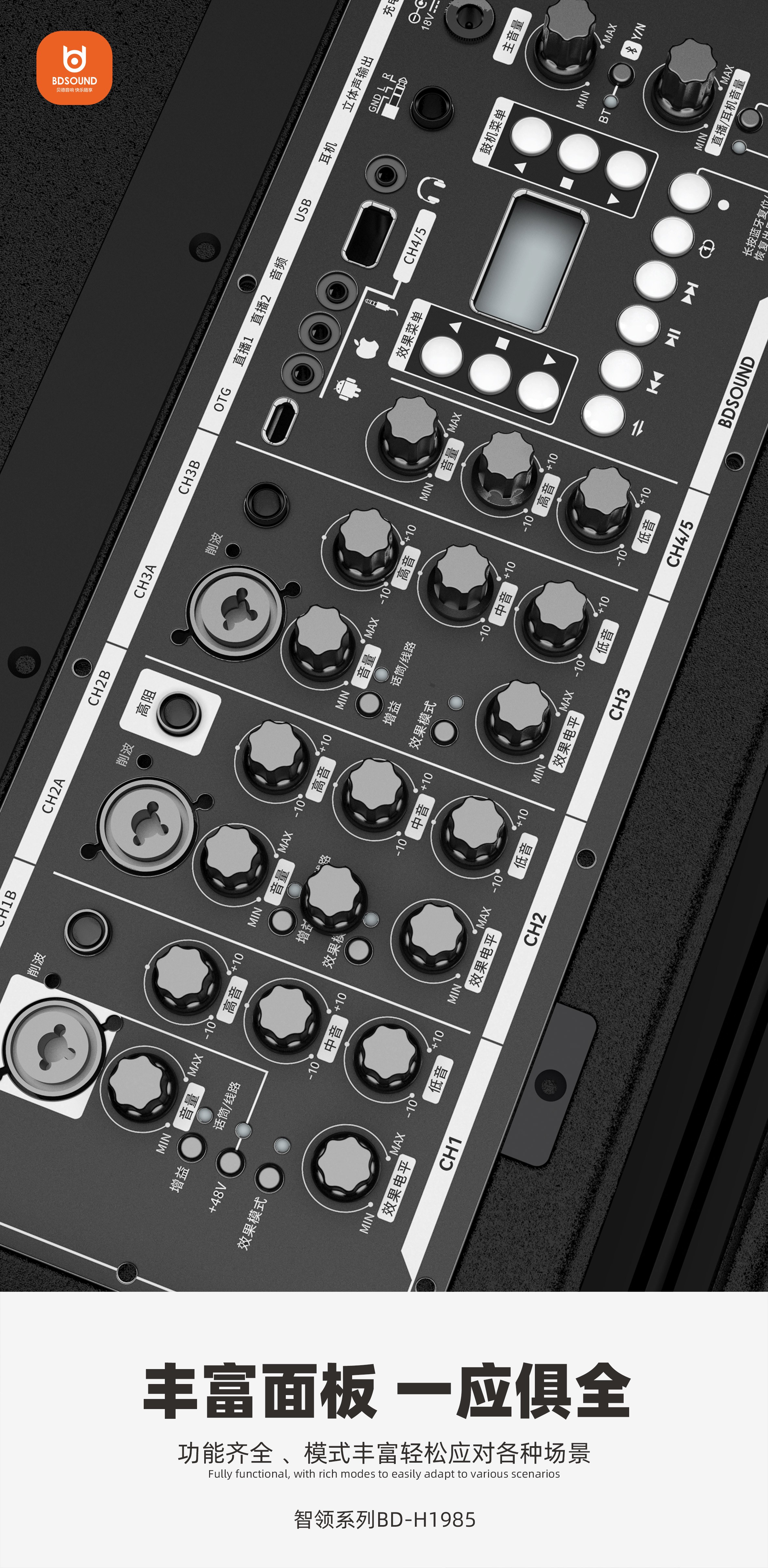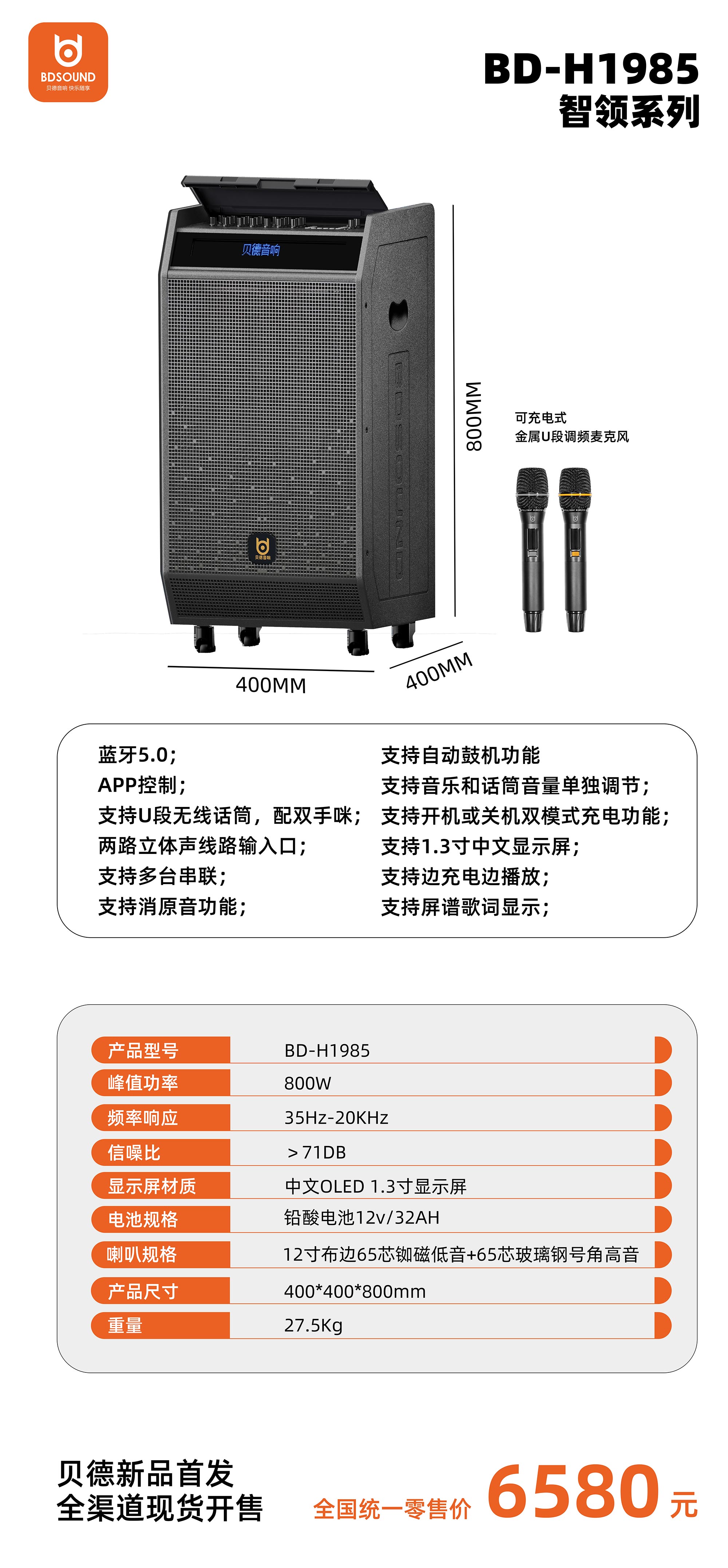 支持自动鼓机功能支持音乐和话筒音量单独调节;