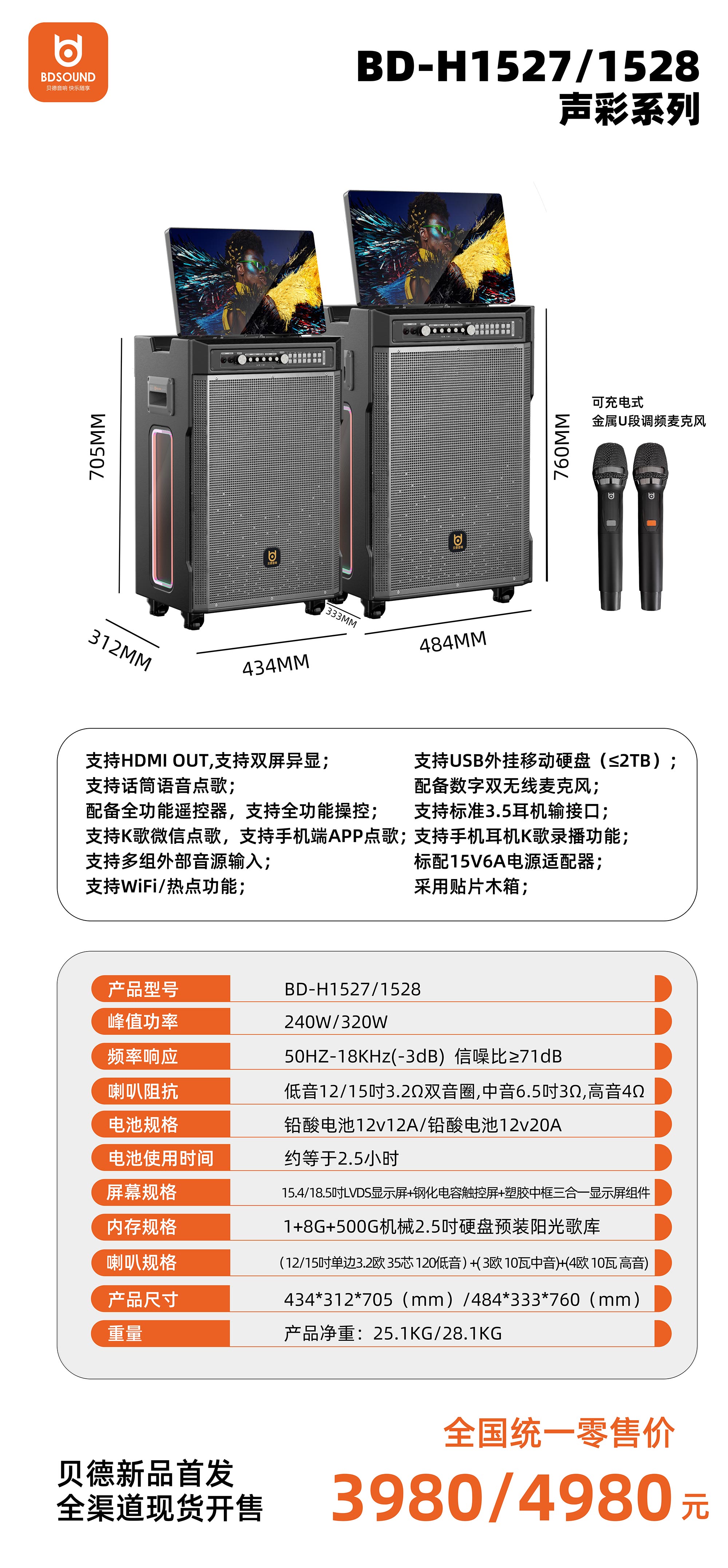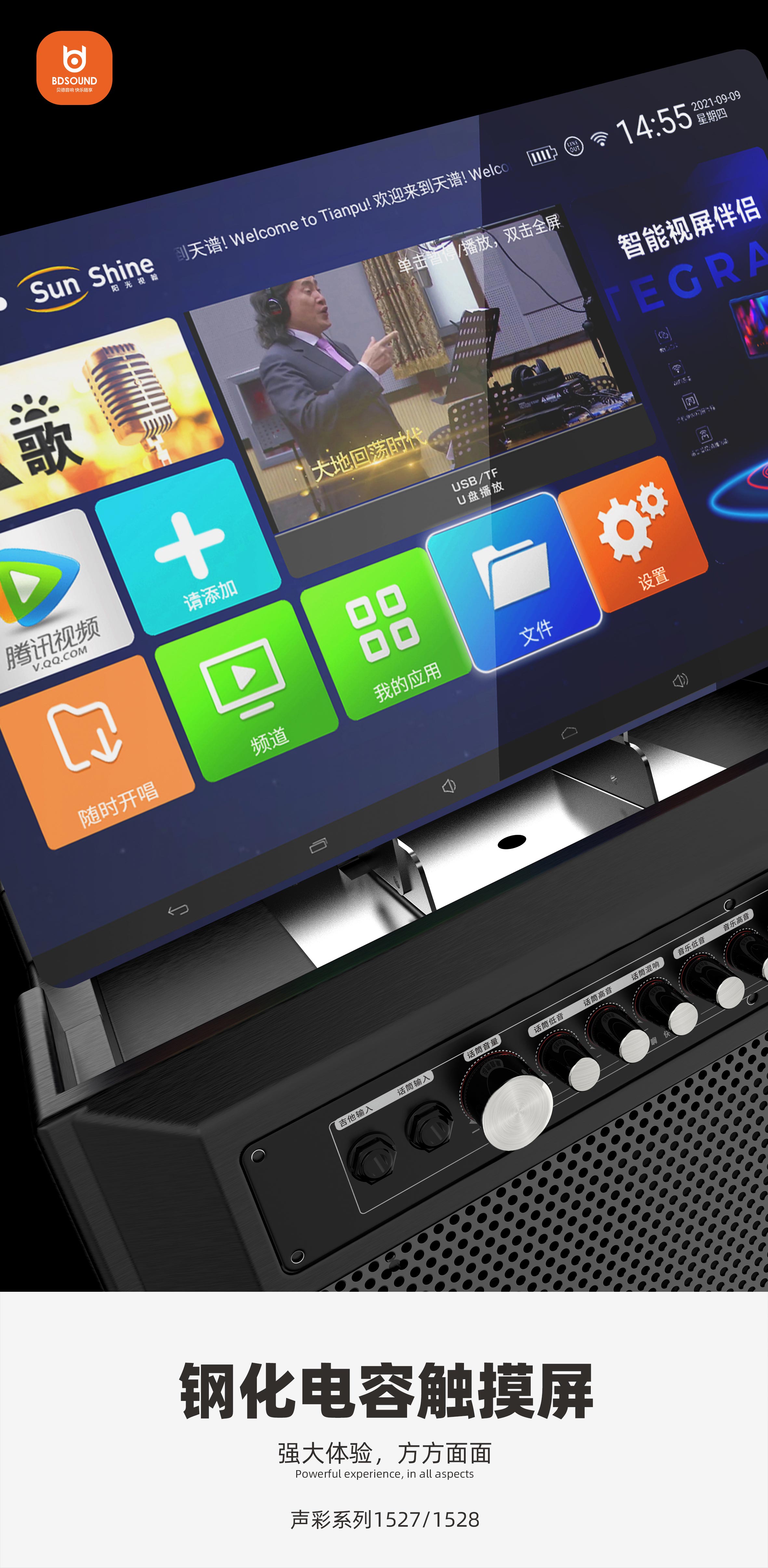 支持话筒语音点歌;配备数字双无线麦克风;