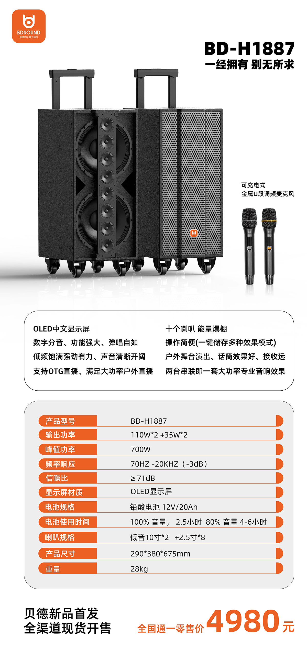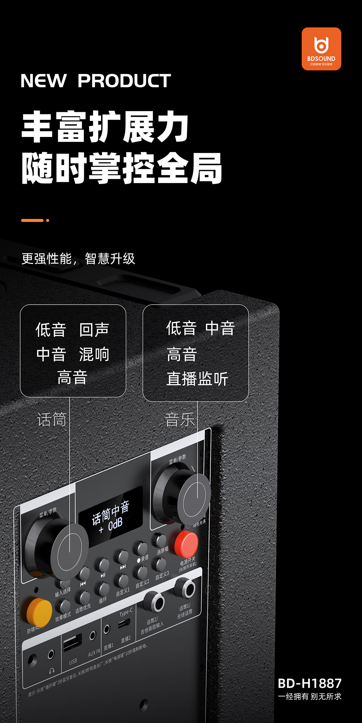 数字分音、功能强大、弹唱自如低频饱满强劲有力、声音清晰开阔支持0TG直播、满足大功率户外直播