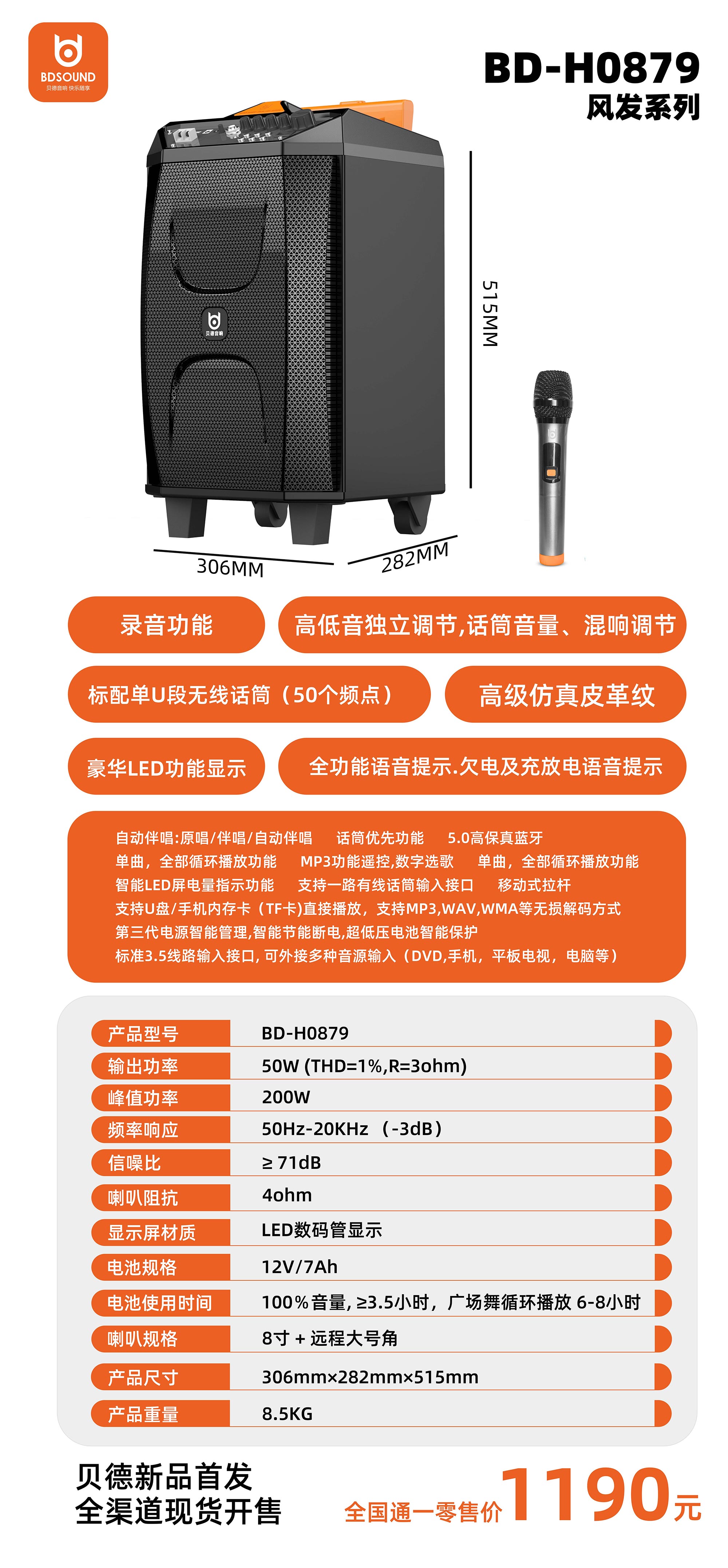支持一路有线话筒输入接口移动式拉杆