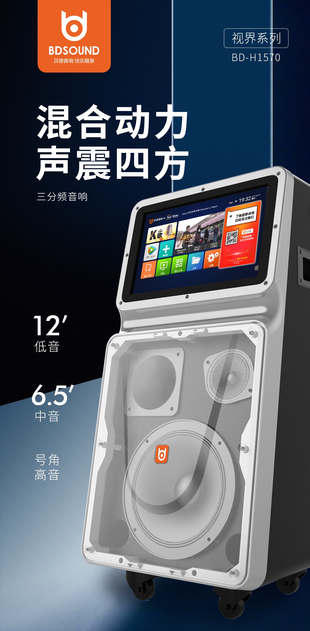 采用专业级12吋低音+6.5吋中音+高音号角扬声器的高密中纤板音箱箱体