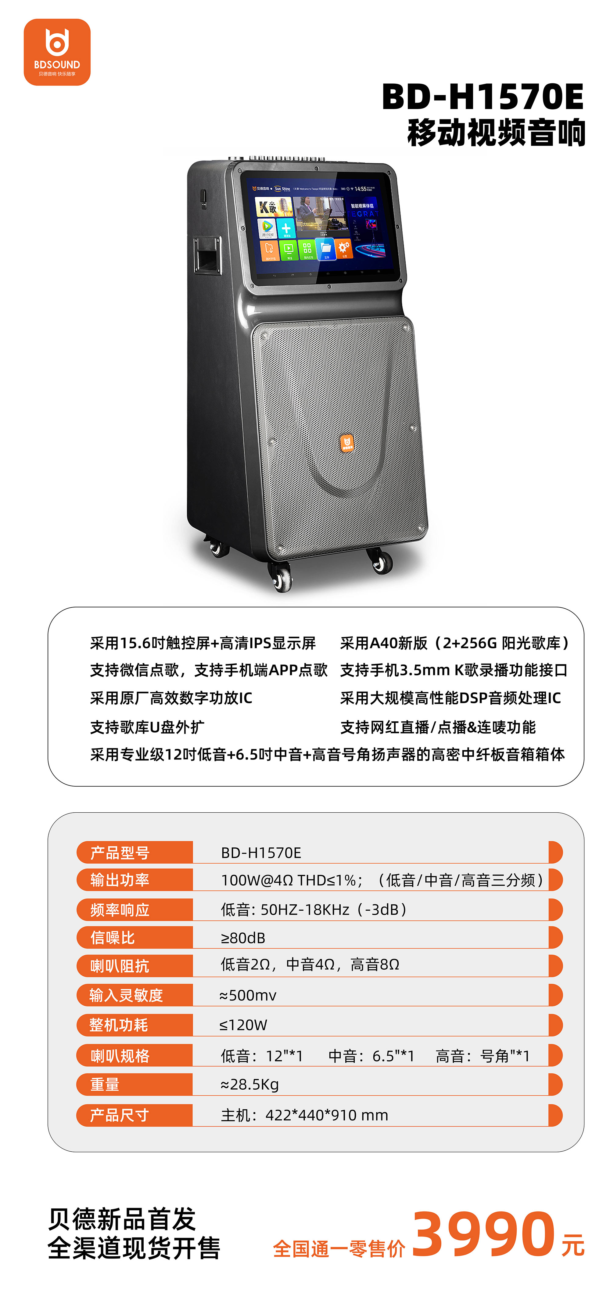 采用15.6吋触控屏+高清IPS显示屏采用A40新版(2+256G阳光歌库)支持微信点歌,