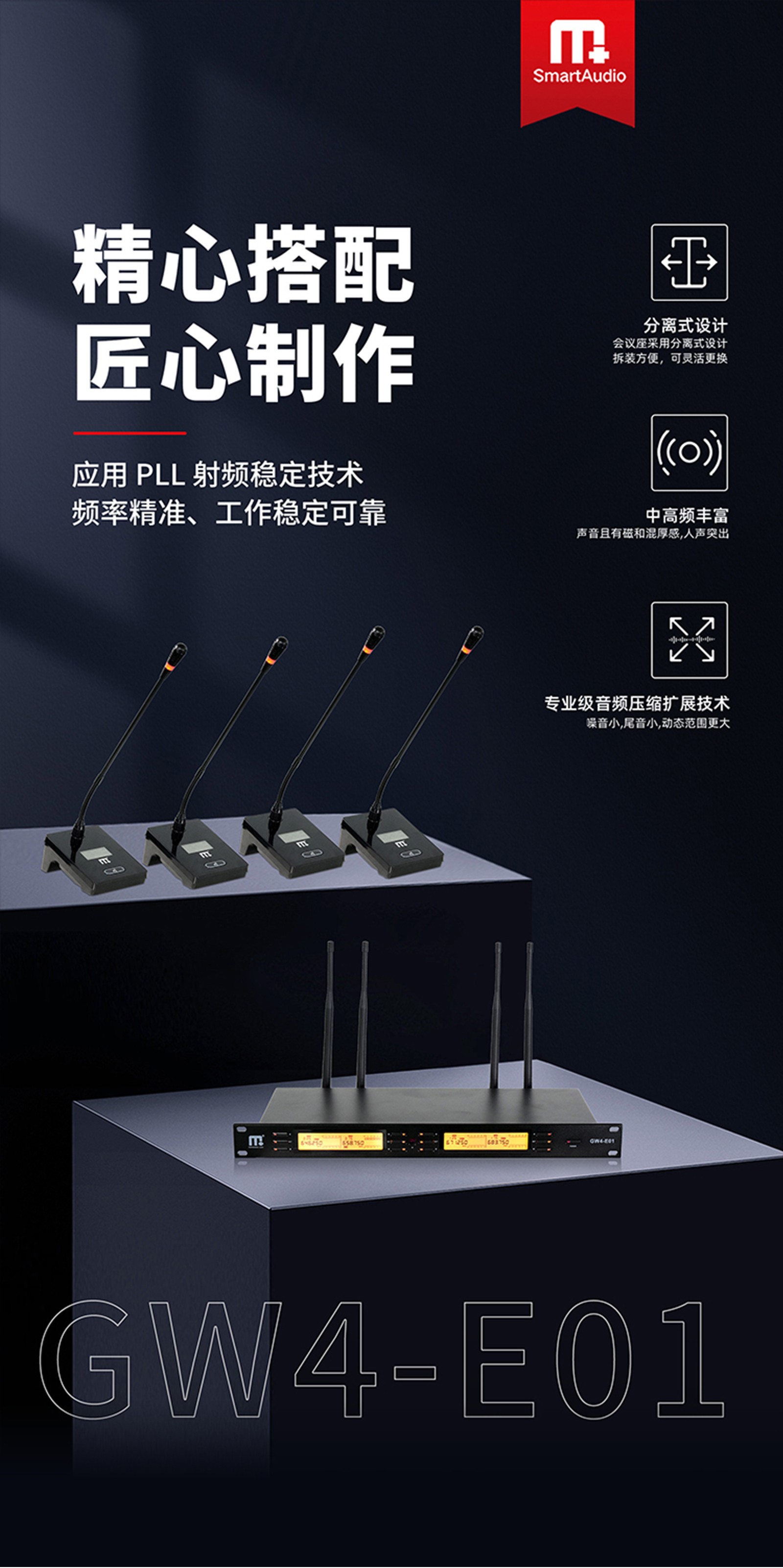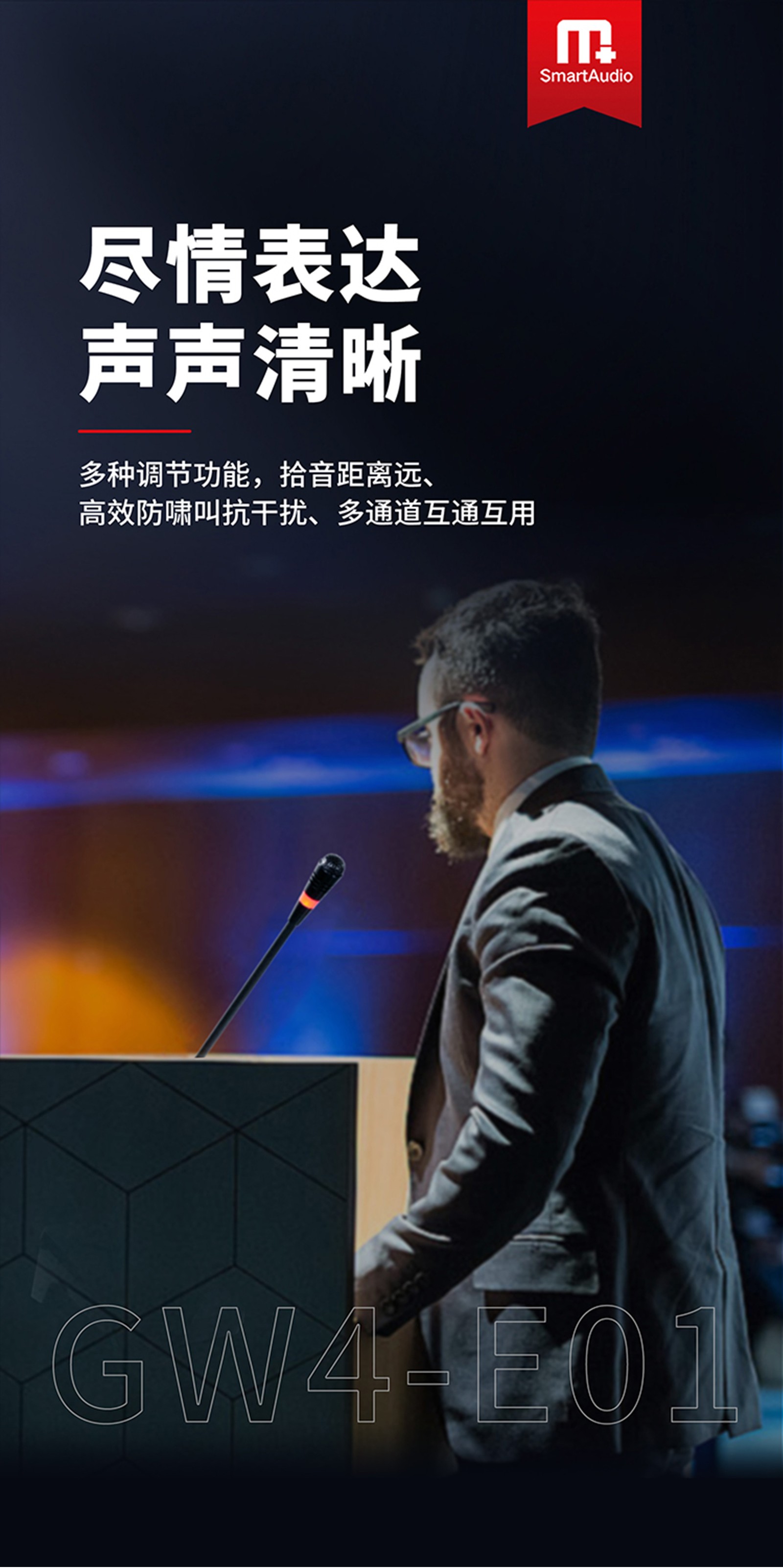 多种调节功能,拾音距离远、高效防啸叫抗干扰、多通道互通互用