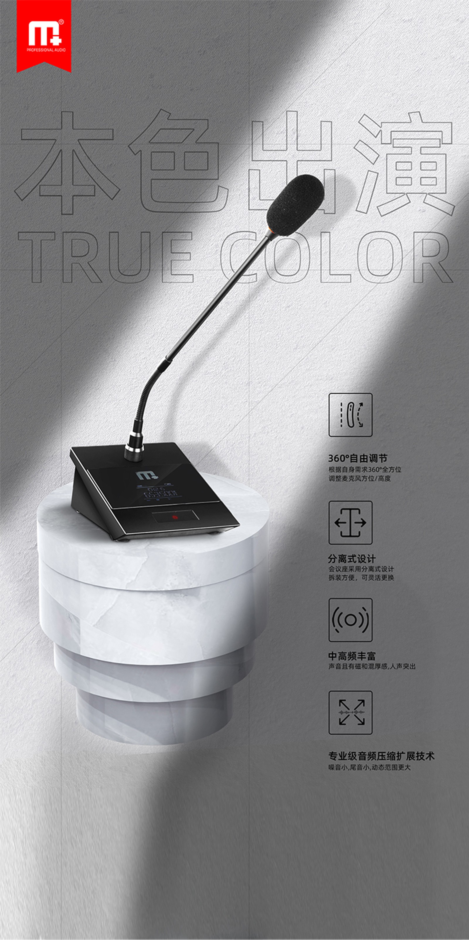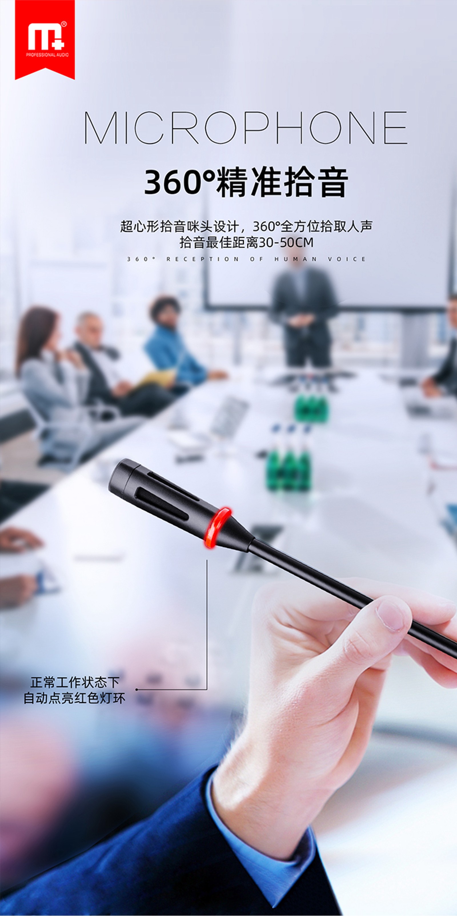 超心形拾音咪头设计,360全方位拾取人声拾音最佳距离30-50CM