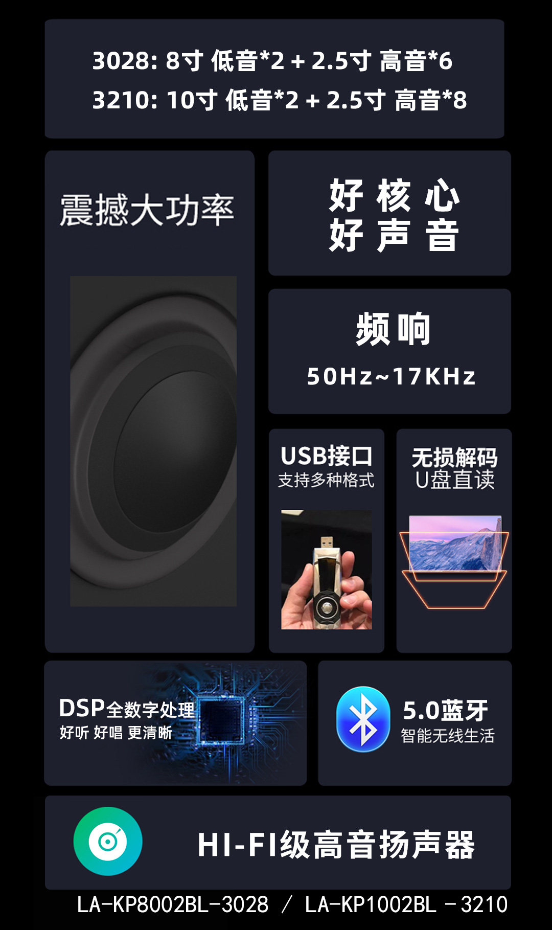 (8)支持多组外部音源输入(BT、多媒体USB、音乐U盘、TF、AUX IN)等;