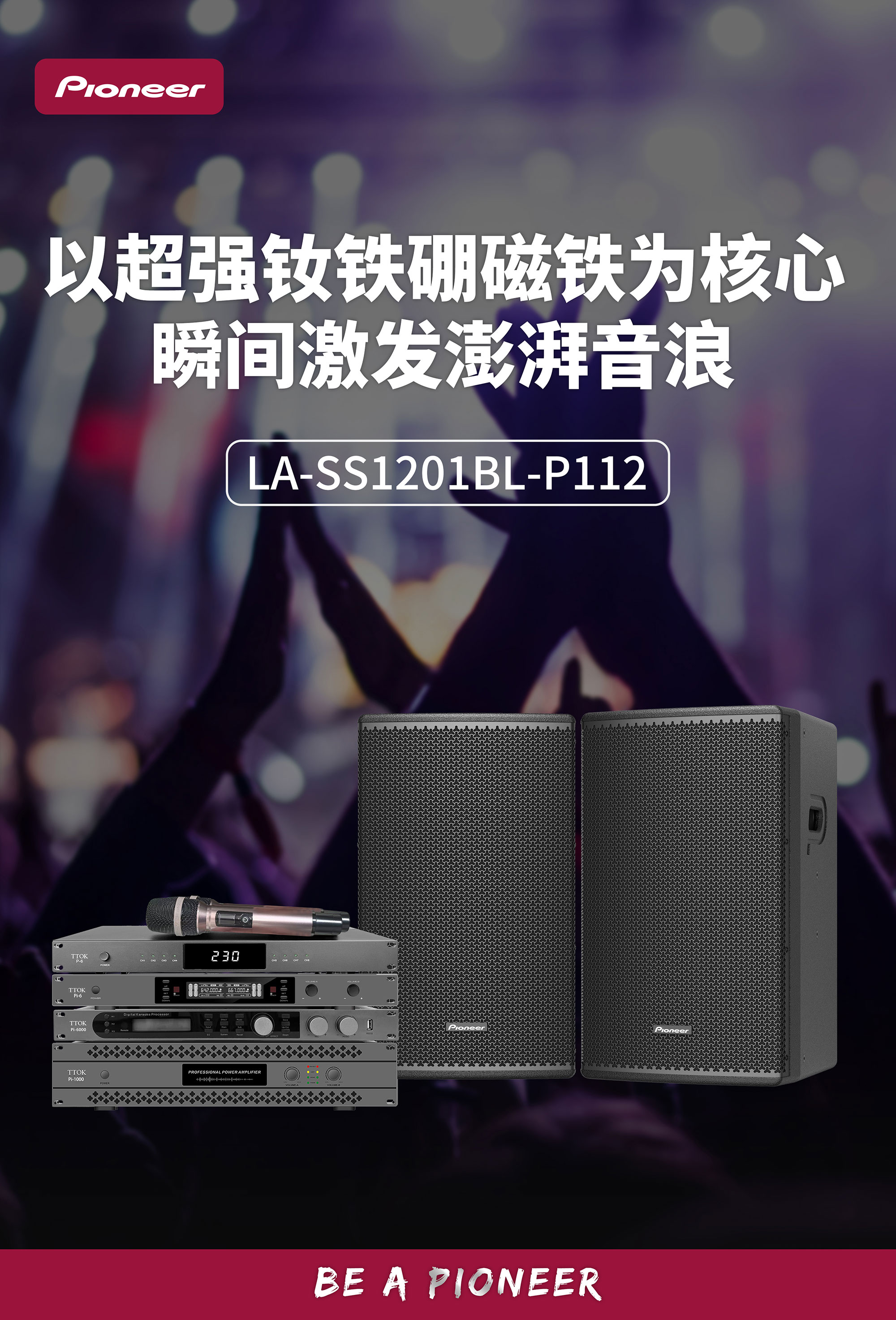 换能器配置:钕磁高频驱动器1.7″(44mm音圈70磁)×1